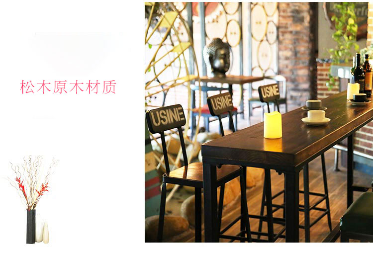 梦达酒吧桌子椅子,松木材质制作,木纹精美,在精湛的打磨工艺下,这款酒吧桌椅尽显细腻精致。铁与木的组合,经典而不失优雅,酒吧、酒馆不佳选!